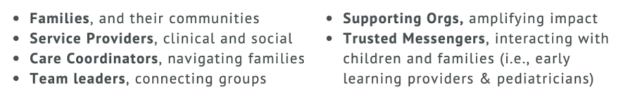 In asking about strengths, a finding everywhere we looked was the importance of connected people – in doctor’s offices, daycares, nonprofits, parent groups, etc. – in making the system work. A culture of collaboration and coordination to make sure people could “connect the dots” to getting the care they need came up again and again. Many of the opportunities identified related to ways to support the people in the system via continued collaboration, leveraging trusted messengers to make connections, and empowering family and community independence.